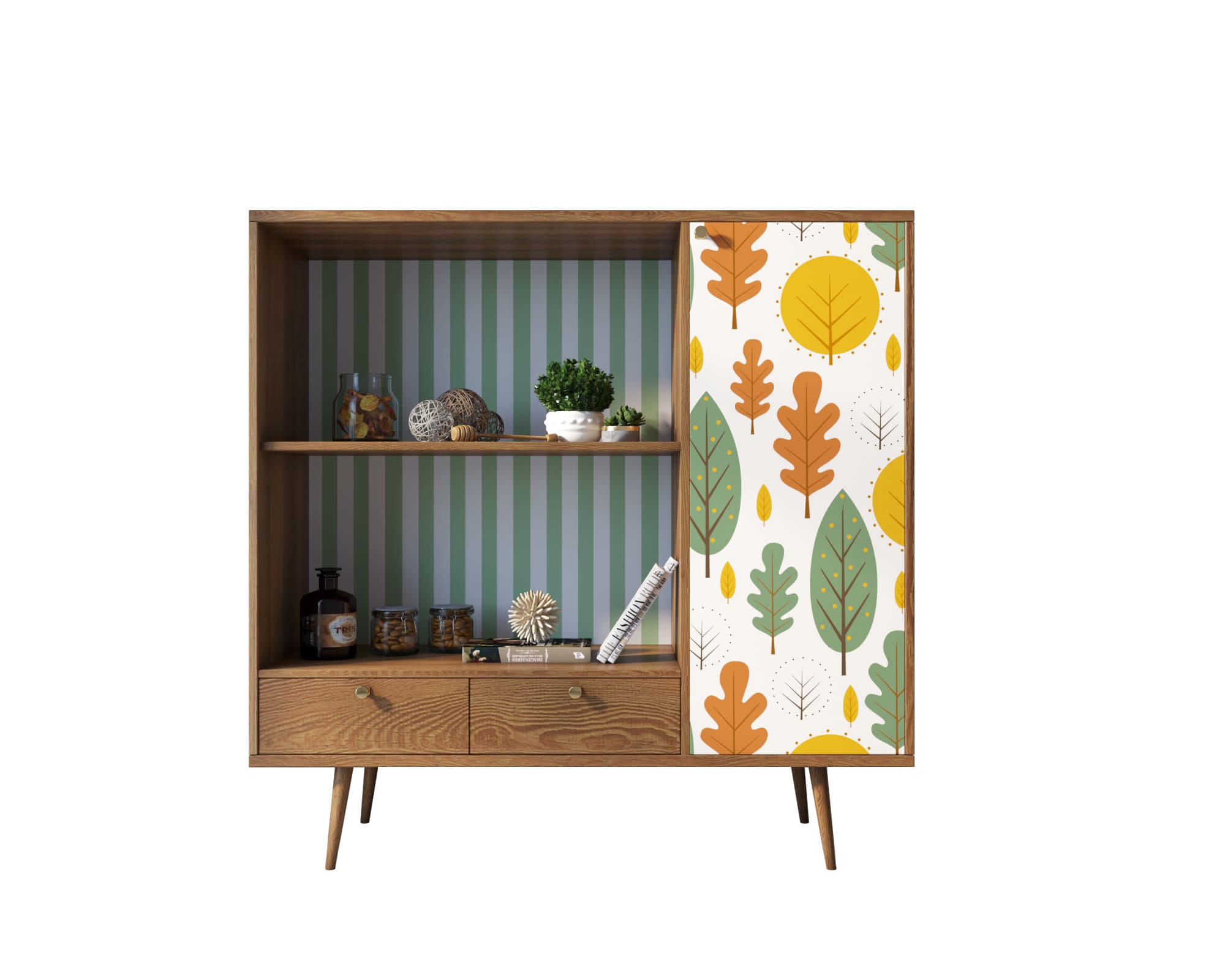 Небольшой стеллажик "Berber" с двумя ящиками и дверкой отлично впишется в гостиную и будет симпатичным акцентом в интерьере. Выберете подходящий принт, разместите на полках немного декора, свечей или книг и получите не только красивую, но и функциональную вещь.