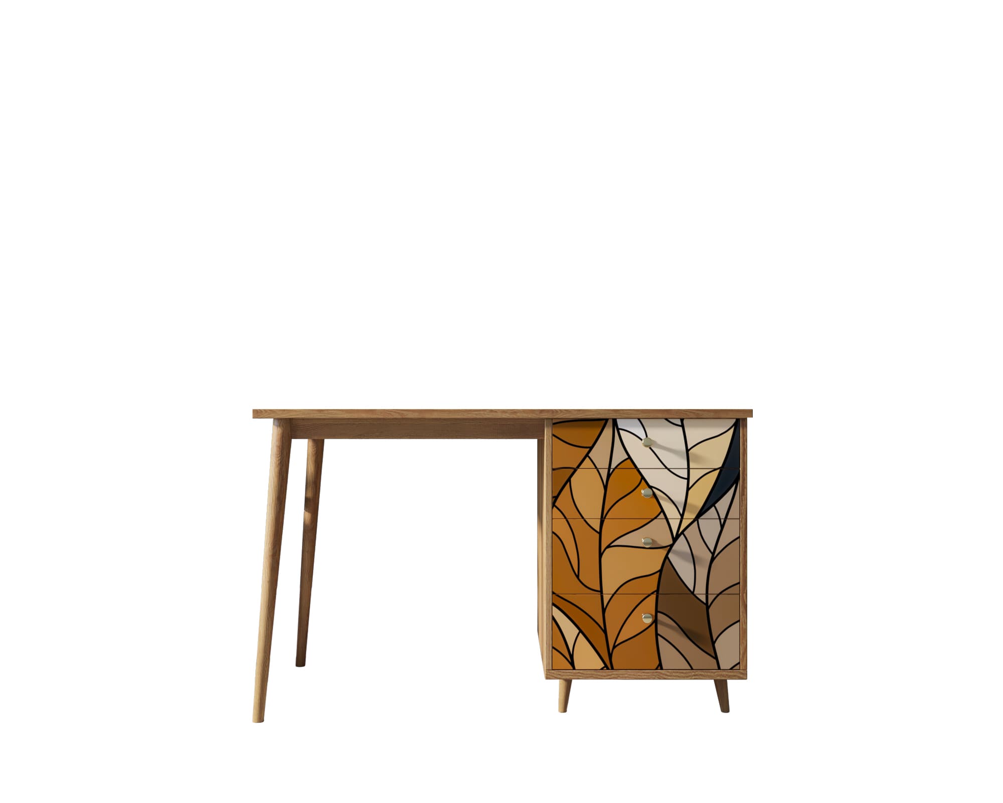 Рабочий стол "Berber" имеет четыре ящика на шариковых направляющих, цельное подстолье из натурального ясеня для улучшения устойчивости и дизайнерский принт на фасаде, который можно заменить по вашему желанию.