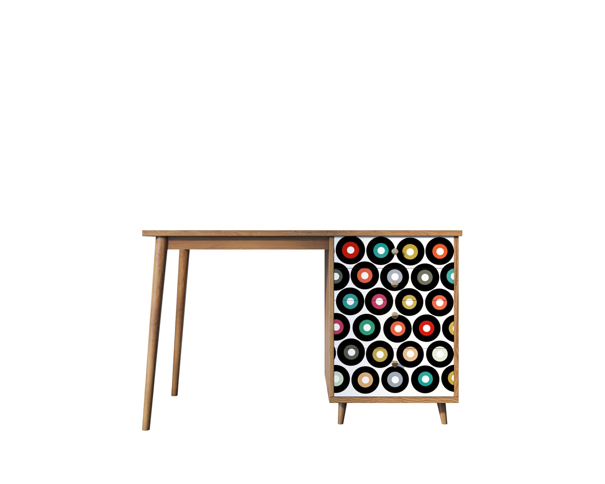 Рабочий стол "Berber" имеет четыре ящика на шариковых направляющих, цельное подстолье из натурального ясеня для улучшения устойчивости и дизайнерский принт на фасаде, который можно заменить по вашему желанию.