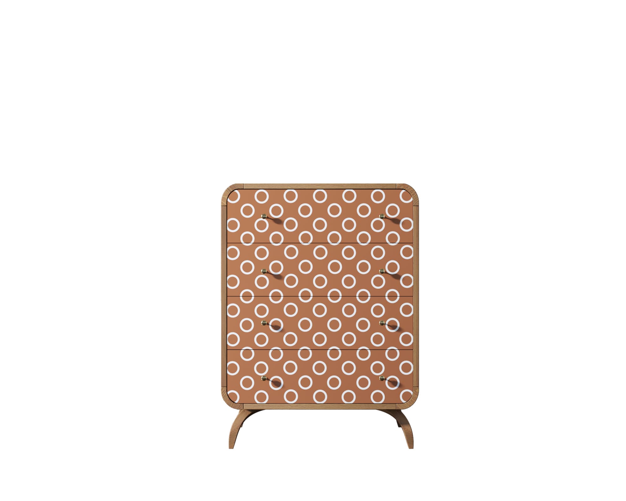 Высокий комод "Ellipse Print" с четырьмя ящиками принт 3 арт EL05/print_3 EL05/print_3 станет роскошным дополнением мебельной композиции спальни. Продукция имеет тщательно продуманную эргономику, которая позволит организовать удобное хранение вещей. Благодаря компактным размерам (70, 40, 95), изделие позволяет максимально рационально использовать каждый сантиметр имеющегося пространства.